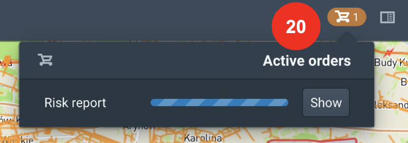 System poinformuje o zakończeniu liczenia raportu zielonym komunikatem w prawym górnym rogu. W każdym momencie możesz sprawdzić status obliczeń klikając w koszyk zamówień (20):