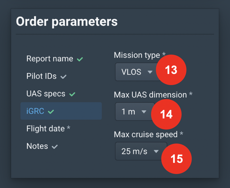 Wprowadź parametry potrzebne do przeliczenia iGRC (intrinsic Ground Risk Class) czyli podstawowej wartości ryzyka, który będziesz mógł/-ła mitygować w kolejnych krokach. Aby wyliczyć iGRC potrzebujemy od Ciebie: