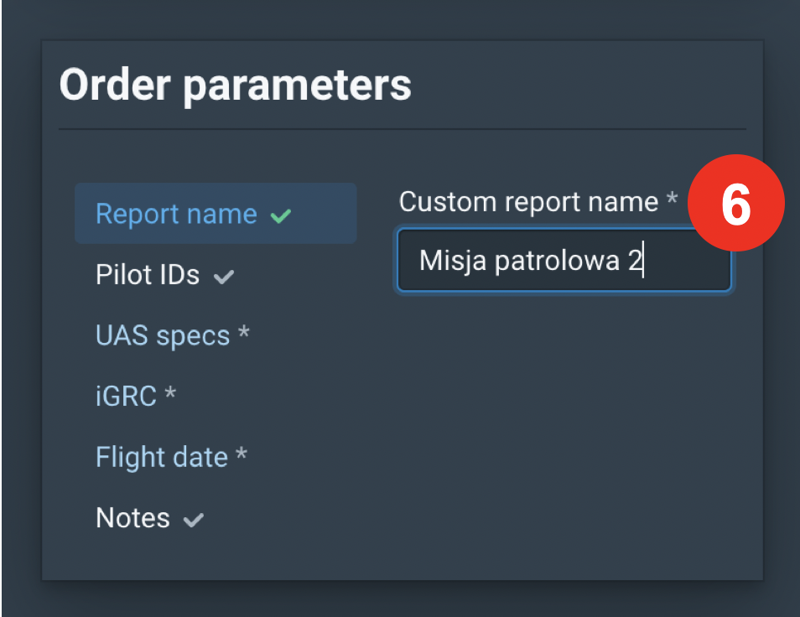 Nazwę raportu. Użyj nazwy jednoznacznie identyfikującą misję (6)